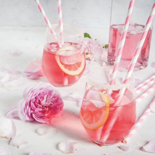 Pour all ingredients over ice, garnish with lemon and raspberry.