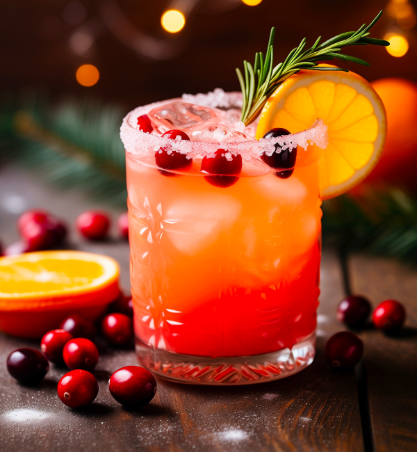 This delightful twist on a classic margarita features Skinny Mixes Naturally Sweetened Peach Margarita Mix, zesty lime juice, and a hint of orange. Garnished with juicy peach slices and fragrant rosemary, it’s a crisp, crowd-pleasing sip that brings a touch of sunshine to your winter celebrations. 🍑❄️