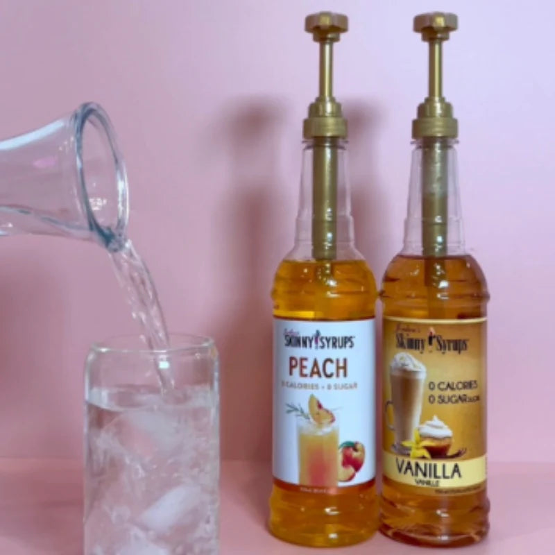 Our Sugar-Free Peach Syrup is included in the Skinny Mixes Starter Kit and is perfect for adding flavor to smoothies, tea, yogurt, oatmeal, protein shakes, and more!