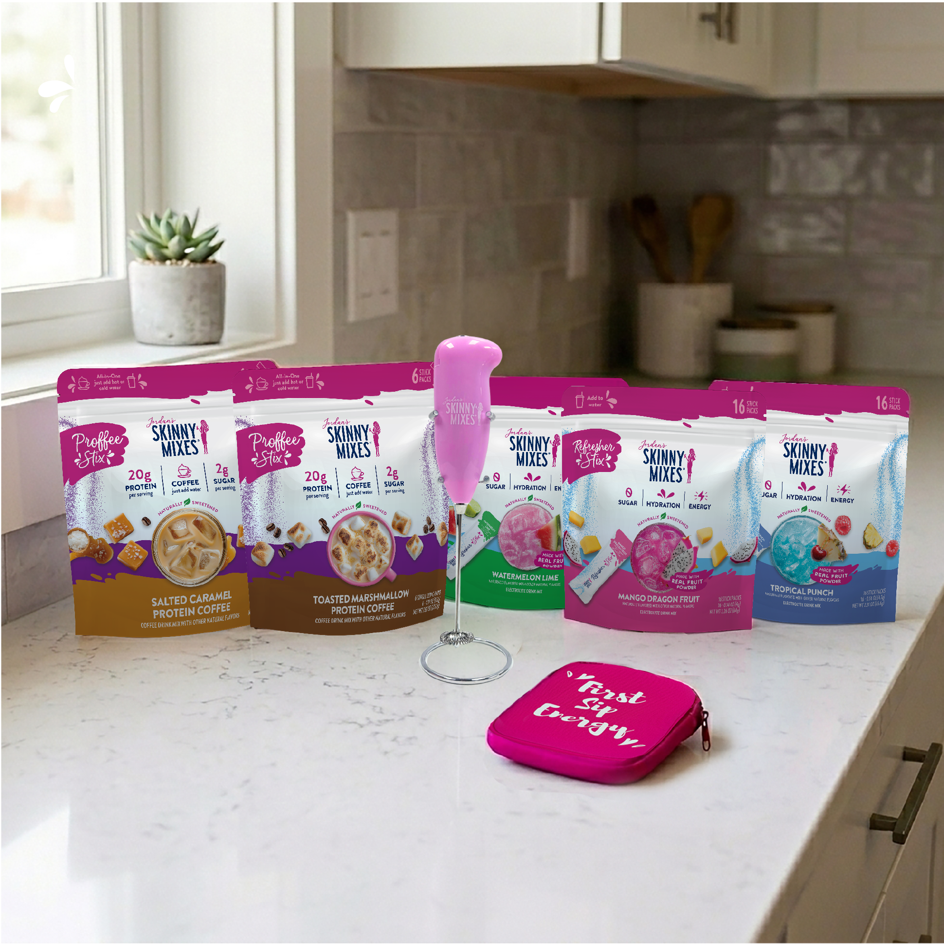 The full Stix experience — 48 Refresher Stix + 12 Proffee Stix, a FREE Pouch, a FREE Frother & FREE Shipping.
