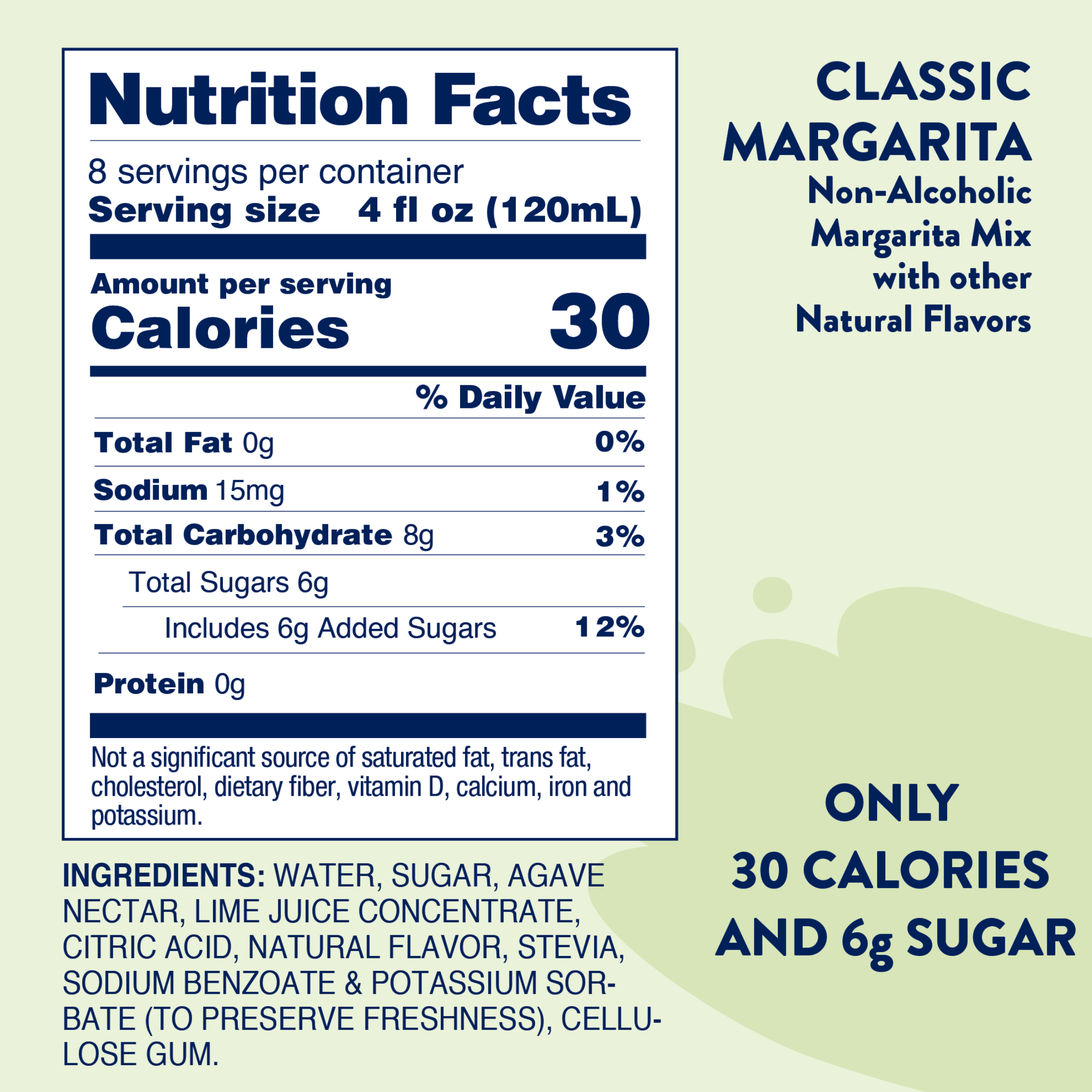 Our Natural Margarita Mix gives you that flawlessly tart flavor using real, fresh limes and a pinch of salt. It is lightly sweetened with agave nectar, stevia and just a hint of pure cane sugar for the perfect sweet and savory flavor of the classic marg that we know and love.