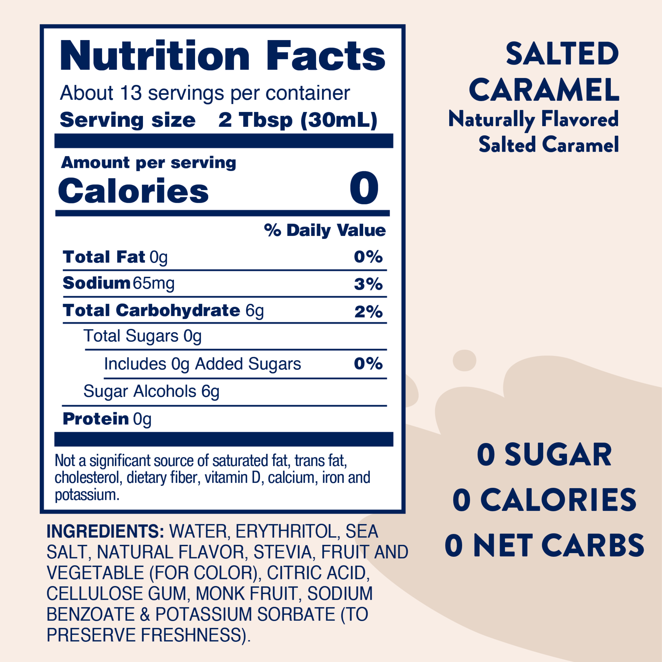 Flavor Notes: Sweet and indulgent caramel finishes with a smooth salt accent. Add guilt-free flavor to coffees, lattes, tea, protein shakes, smoothies, baking, oatmeal or just about anything.