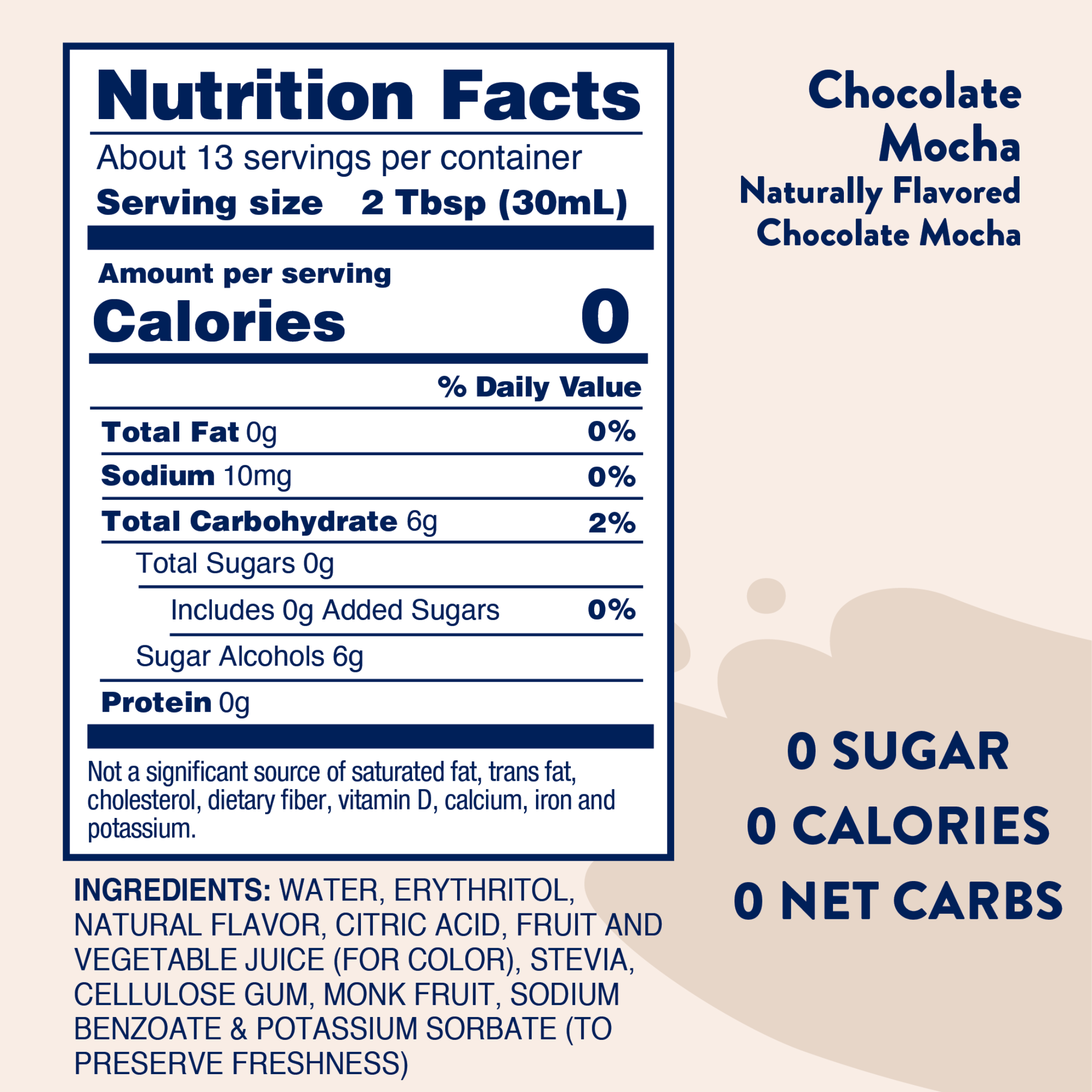 - 1 oz of Naturally Sweetened Chocolate Mocha Syrup
