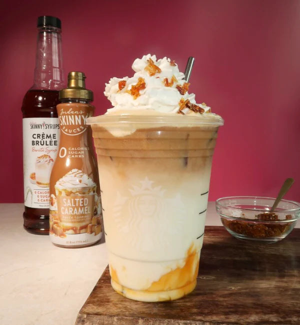 - Top with whipped cream, Skinny Sauce, and Brulee Topping.