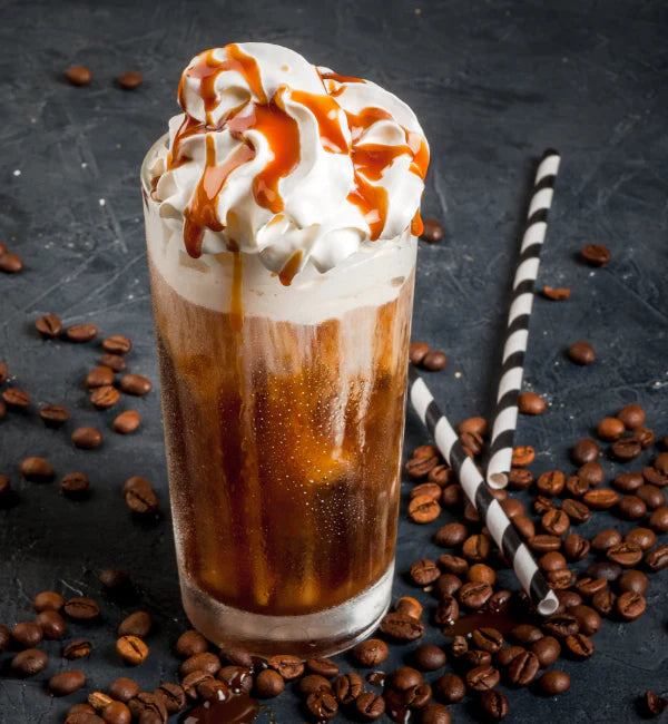 Simply add 1 cup chilled coffee, 2 tbsp Syrup and milk or cream to taste to a glass full of ice. Stir and top with a drizzle of caramel sauce.