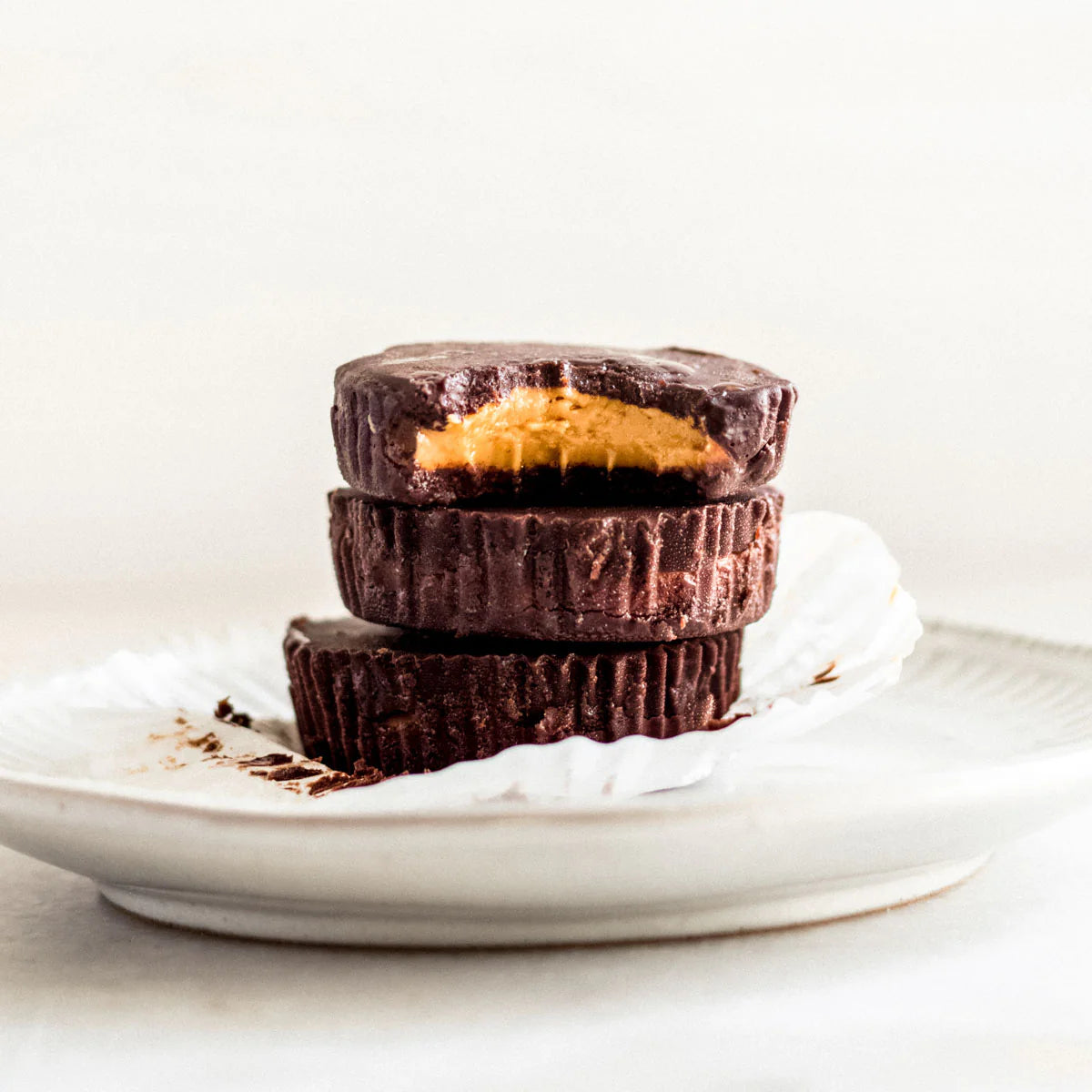 - Take a bite and enjoy! These homemade chocolate peanut butter cups contain half the sugar and carbohydrates of a traditional Reese's Peanut Butter Cup. Additionally, this recipe is vegan as-is. It's a treat you can't resist!