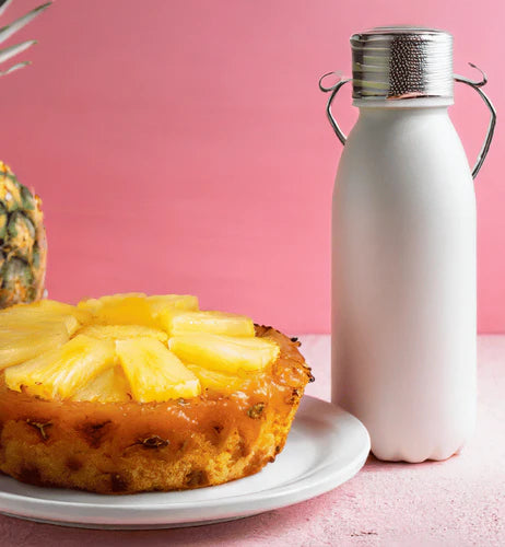 Quench your thirst with a taste of tropical paradise: Pineapple Upside Down Cake Water, infused with the delectable flavor of Jordan's Skinny Mixes Sugar Free Pineapple Upside Down Cake Syrup. This refreshing beverage combines the sweetness of pineapple with hints of caramelized sugar and buttery cake, creating a delightful drink that will transport you to sunny shores with every sip.