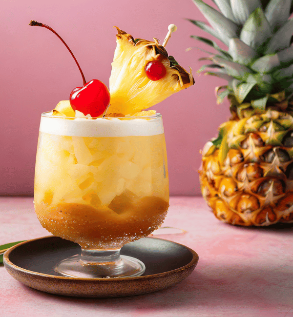 - Serve immediately and enjoy the refreshing taste of your Pineapple Upside Down Cake Mocktail.