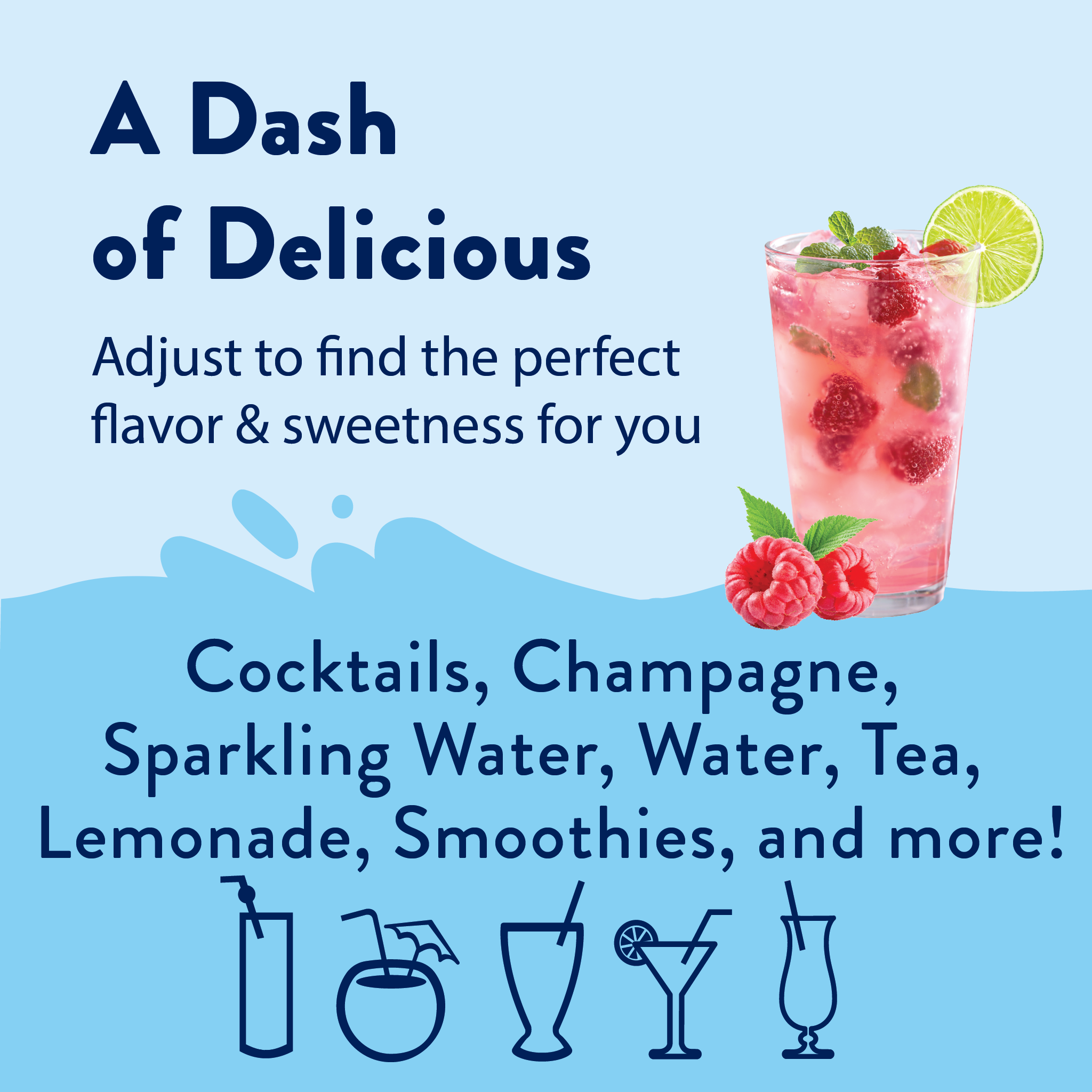 Make refreshing lemonades, iced teas, smoothies, and add to alcoholic drinks for a sweet, fresh-picked raspberry-flavored drink. Add guilt-free flavor to teas, lemonades, water, smoothies, cocktails, juices, oatmeal, or just about anything. Now with ZERO Artificial Dyes.